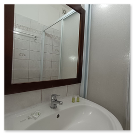 Soggiorno con cucina in legno pregiato composto da piano cottura, frigo congelatore e forno, bagno, una camera da letto matrimoniale e una camera da letto con due letti singoli, più un divano letto singolo.