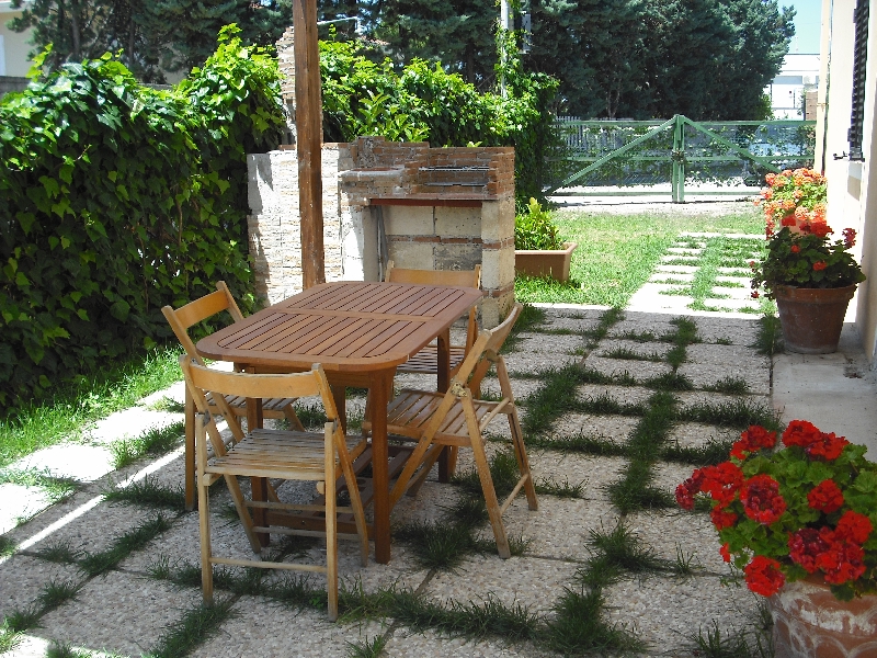Posto al piano terra. L'appartamento Aurora offre: posto auto interno nelle vicinanze dell’ingresso, doccia esterna, fontanina e barbecue in muratura, giardino con pergolato coperto attrezzato con dondolo, lettini prendisole, tavolo e sedie, coorte di pertinenza. L’interno è composto da un ampia cucina soggiorno, bagno con doccia, disimpegno, due camerette, una matrimoniale l’altra con lettini singoli. Questa abitazione è ideale per una famiglia composta massimo da 5 elementi.
