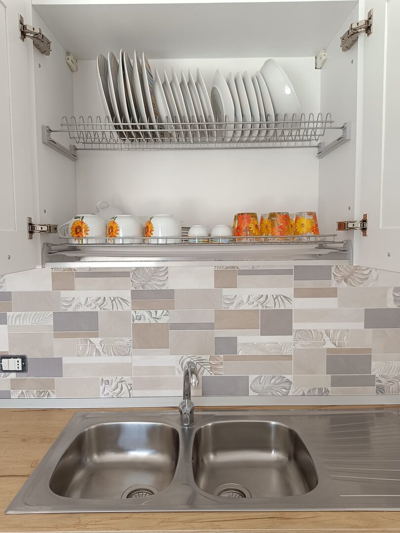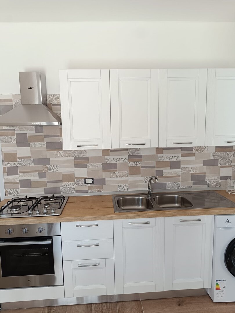 Dispone di un ampia cucina con piano cottura, forno, frigorifero e congelatore compreso di utensili e stoviglie. Divano letto e due stanze con letto matrimoniale e inoltre set per pulizie.