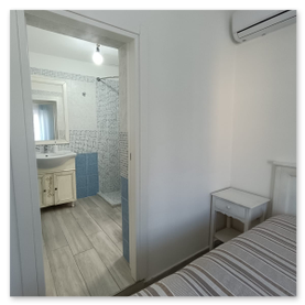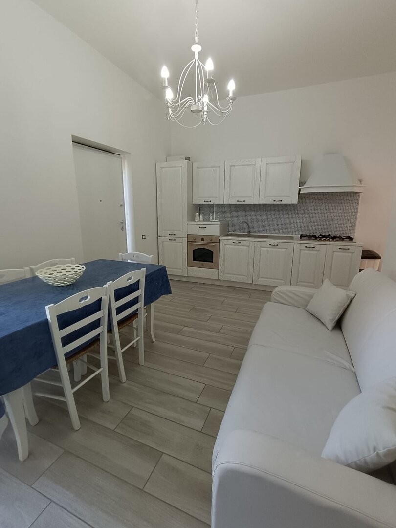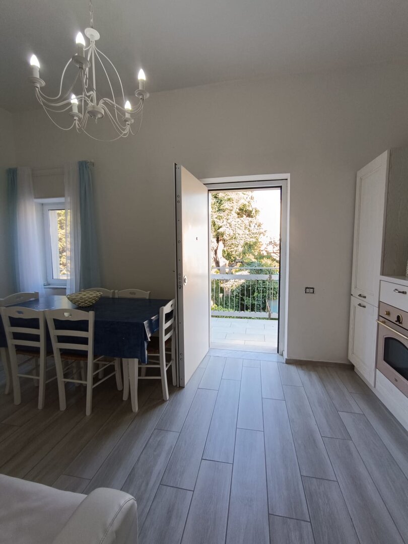 Perfetto per un gruppo di 6 persone composto da soggiorno con cucina attrezzata con frigo congelatore, forno, piano cottura compreso di stoviglie e utensili, due camere da letto con letto matrimoniale, una di queste con bagno in camera, due bagni, divano letto in soggiorno e un ampio balconcino attrezzato con vista giardino.