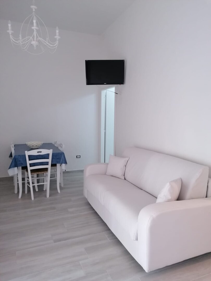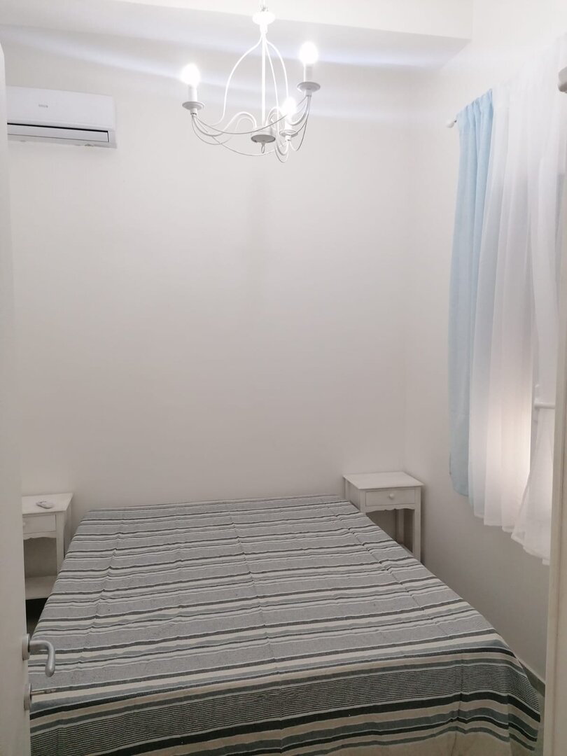 L'appartamento dispone di un'ampia camera da letto matrimoniale e un soggiorno con un divano-letto a due posti. Ci sono anche sedie e un tavolo da giardino per godersi il sole all'aperto. Per la vostra comodità, l'appartamento è dotato di aria condizionata, lavatrice, ferro ed asse da stiro.